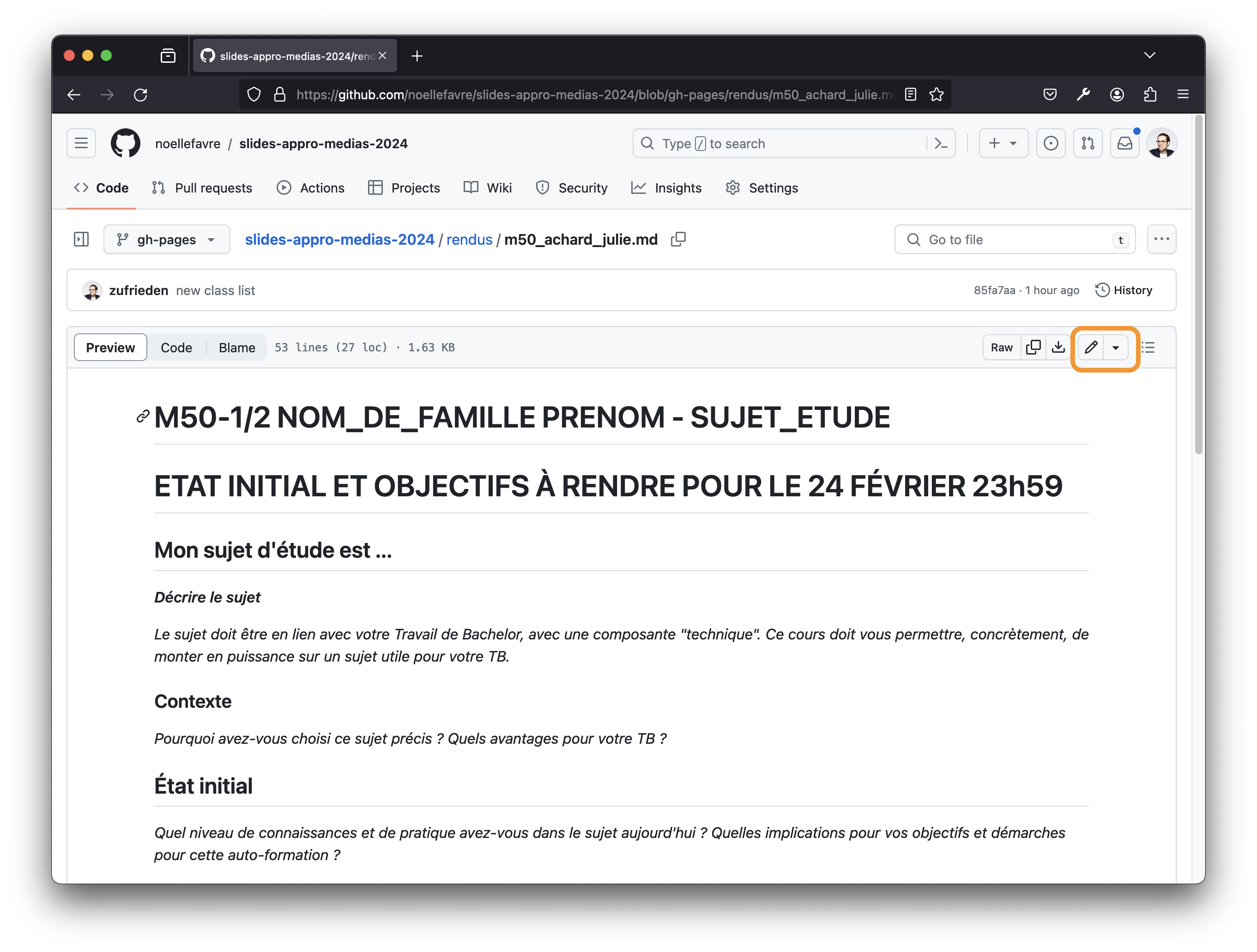50% – État initial et objectifsDélai : 23 février 23h59 |