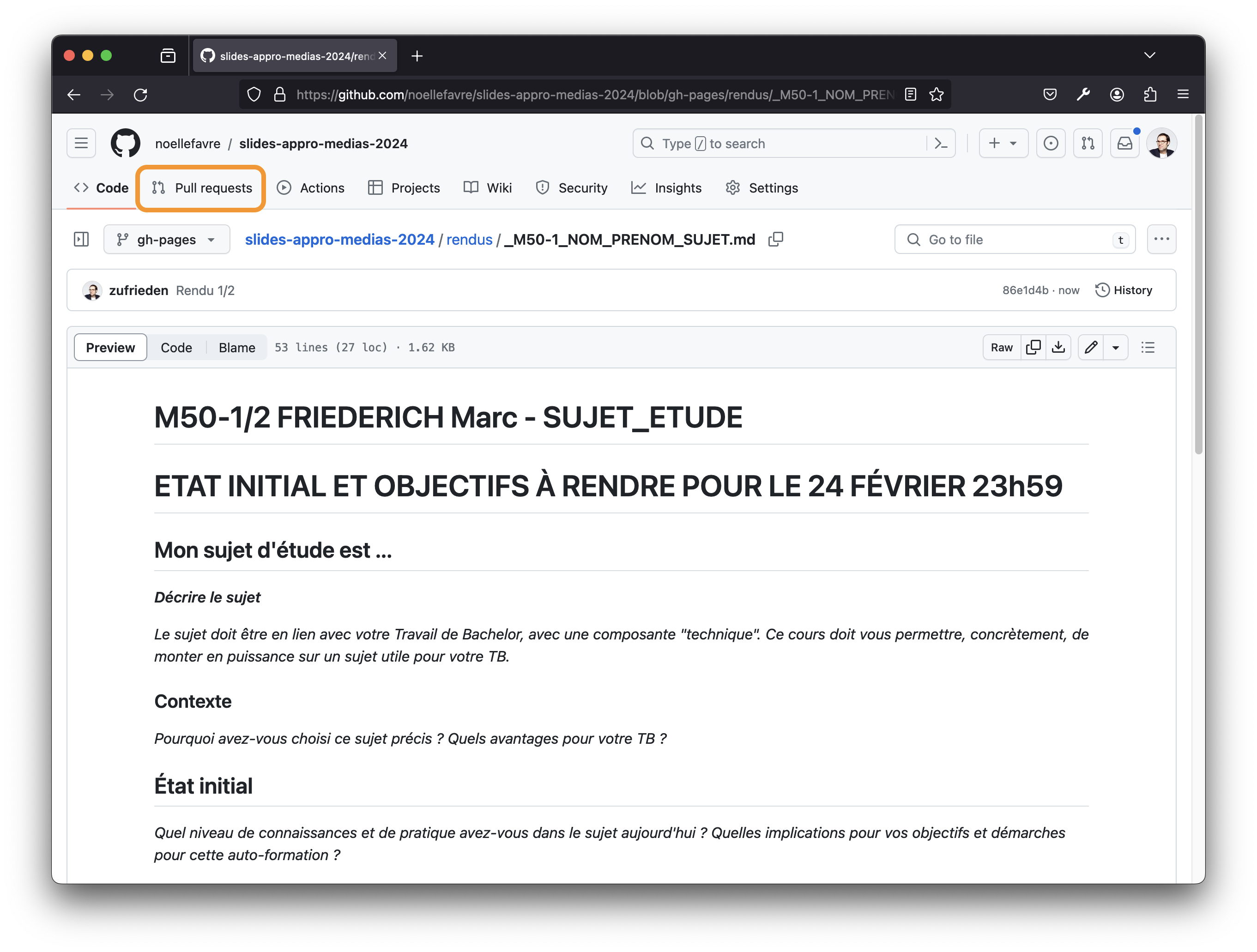 ✅ Le PR est réalisé sur GitHub avant la date limite ✅ Les objectifs sont SMART ✅ La démarche est cohérente ✅ L'expérimentation permet de mesurer l'acquisition des compétences ✅ Qualité/pertinence des 5 questions |