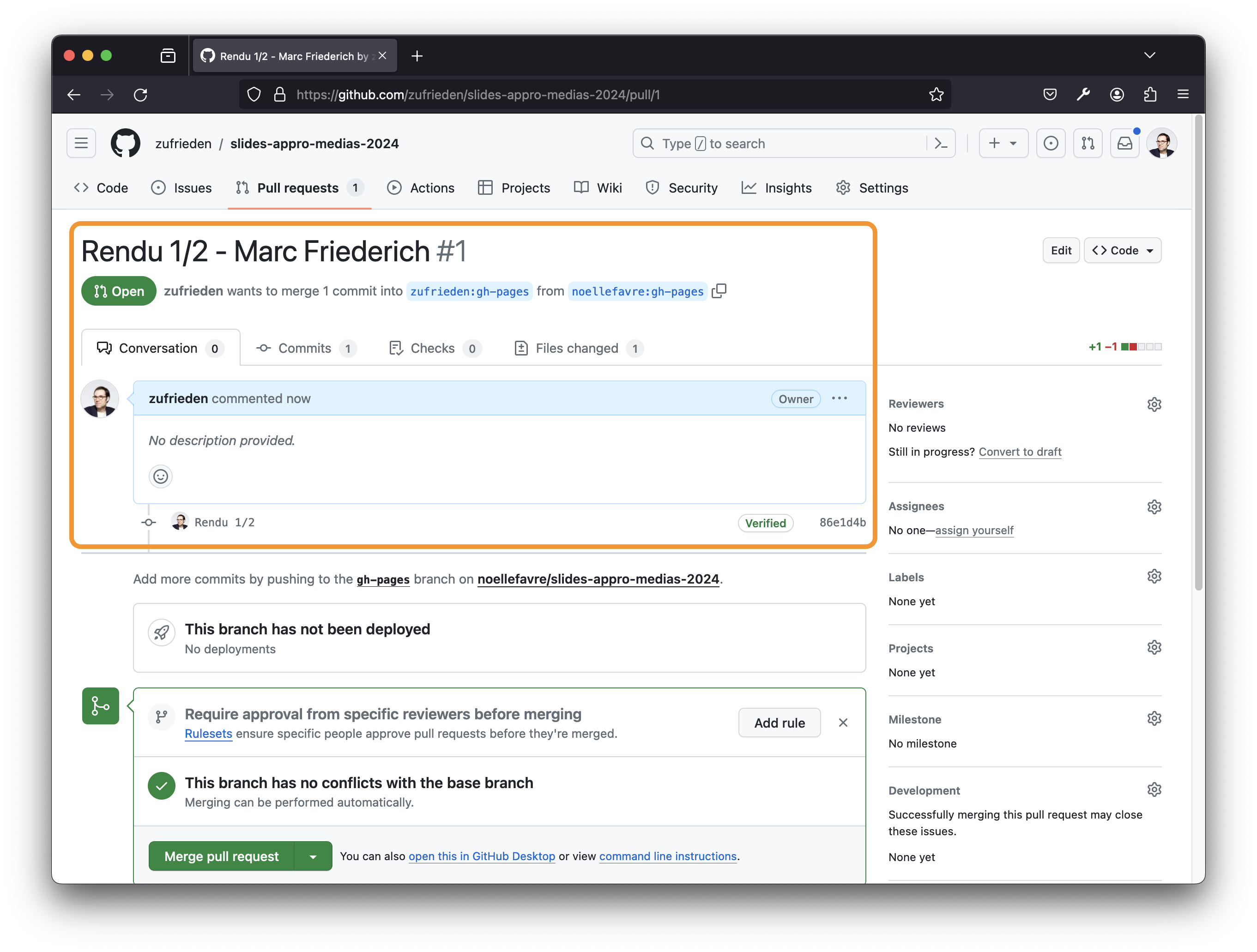 ✅ Le PR est réalisé sur GitHub avant la date limite ✅ Conclusions et maturité sur l'auto-évaluation et sur l'expérimentation ✅ Réponses et reformulation des 5 questions |